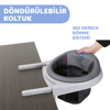 Sabitleme pimleri ve kaymaz lastik kollar sayesinde farklı türdeki masalara rahat ve güvenli bağlantı.