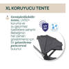Büyük koruyucu tentesinde gözetleme penceresi bulunur. UV50+ ve yağmura karşı dayanıklı koruma ile donatılmıştır.