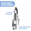 Ø Katlaması kolaydır, katlandığında kendi kendine ayakta durabilir ve tepsisi arka ayaklarının üzerine asılabilir.
